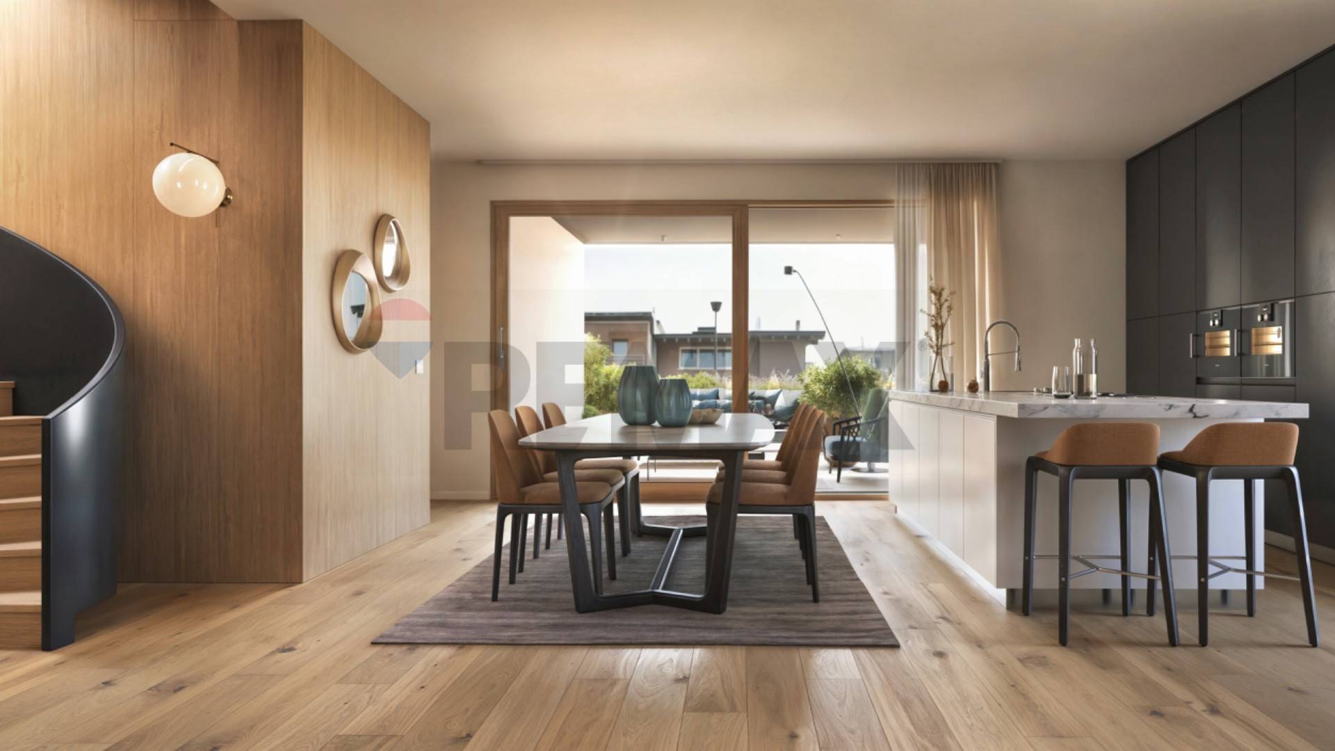 Gli spazi interni si fondono con terrazze vivibili, mentre la piscina comune e la zona solarium creano un’oasi di relax esclusiva.