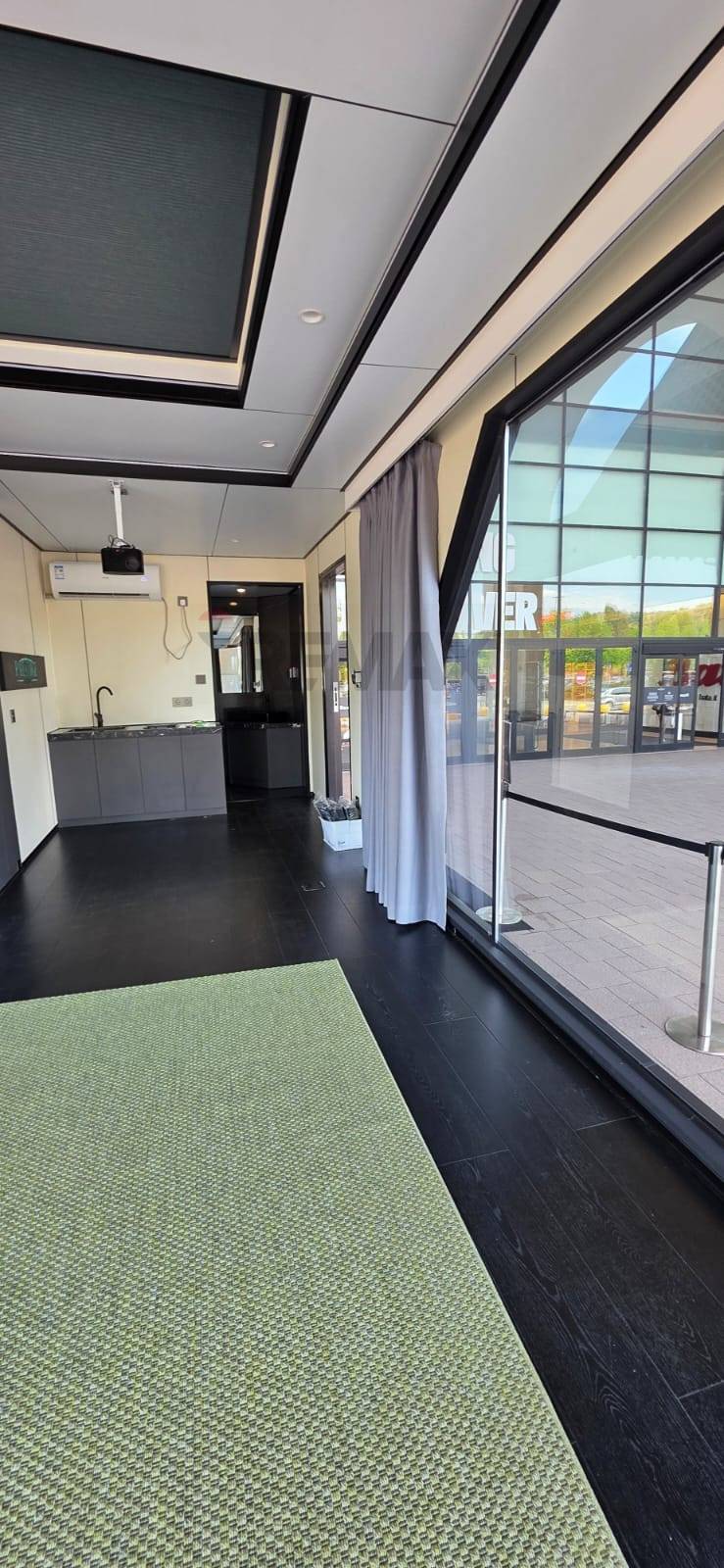 MODELLO H7-Abitazioni temporanee RTA o per metterci la propria residenza. Trattasi di strutture mobili non adibite a circolare su strada ma dotate di ruote per essere spostate all’interno di un sito nel quale sono collocate a titolo di edificio con connotazioni residenziali. Sono strutture fornite su ordinazione, altamente tecnologiche con tutti i comfort ed i servizi. Le dimensioni variano dai 28 a 38 m². Possono essere un monolocale o ampio bilocale completamente attrezzato di tutto punto; manca solo l’arredamento; La casa è perfettamente isolata acusticamente e termicamente, con uno strato di schiuma di poliuretano di 100 mm; telaio in acciaio zincato antisismico, doppio vetro con schermatura UV. Il rivestimento acustico e termico è di materiale ignifugo. Particolarmente adatte per chi volesse creare un’area adibita ad un affitto turistico per case vacanze.