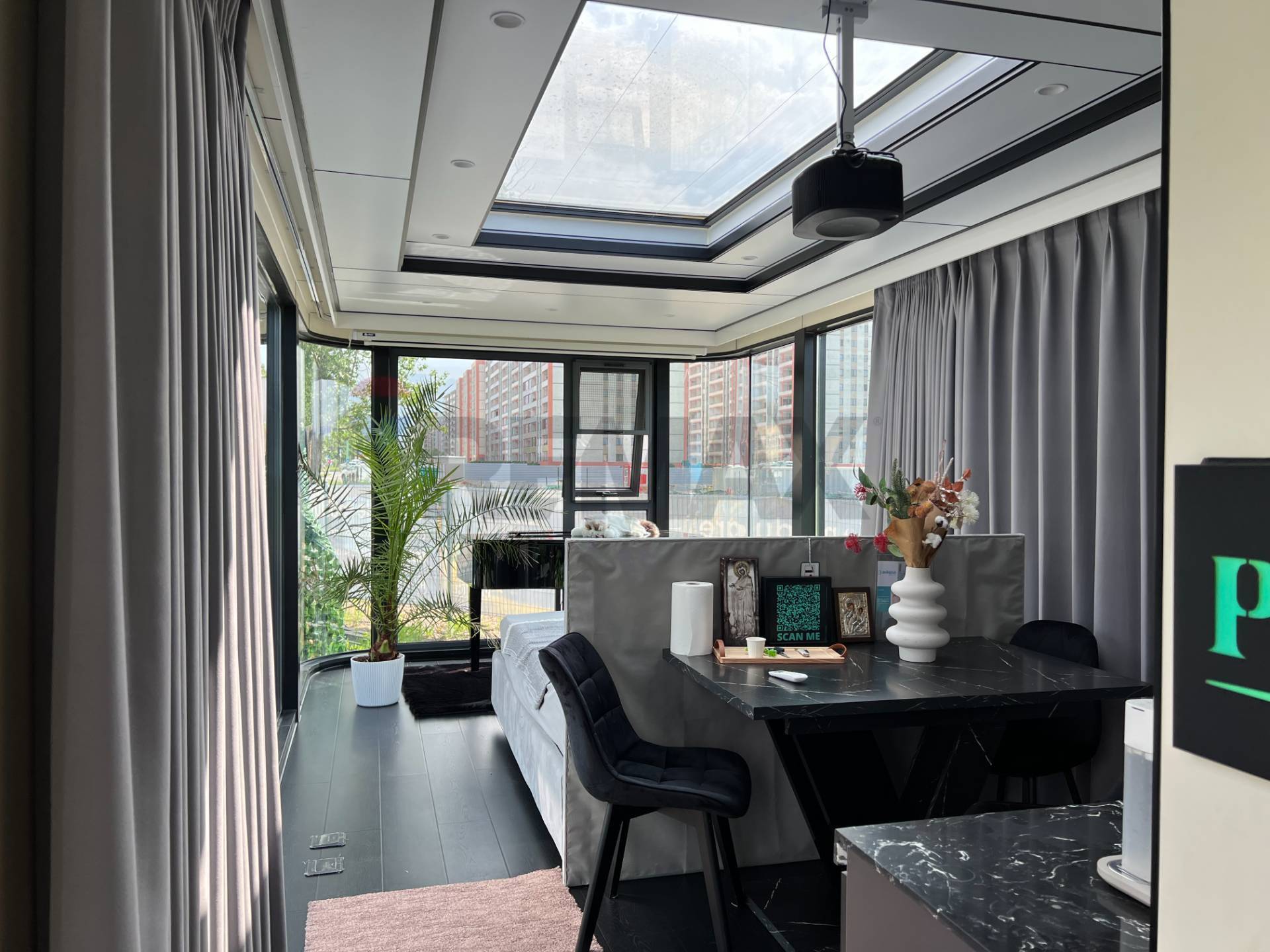 È una struttura altamente duttile che è possibile fornire in tre modelli essenzialmente di tre metrature diverse; viene consegnata corredata di tutta la domotica, impianto cinema all’interno del soggiorno angolo cottura completo e bagno finemente arredato con materiali di pregio, impianto di climatizzazione e riscaldamento con pompa di calore;