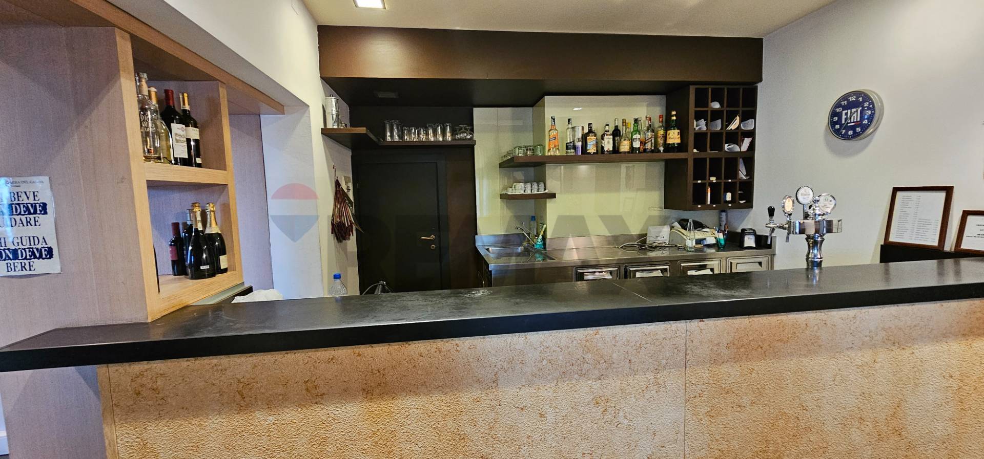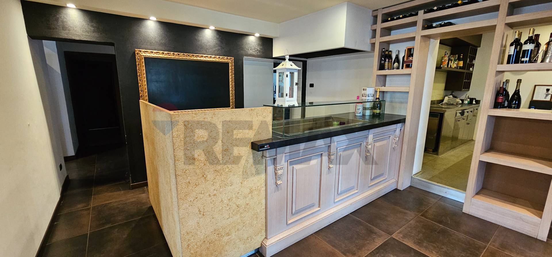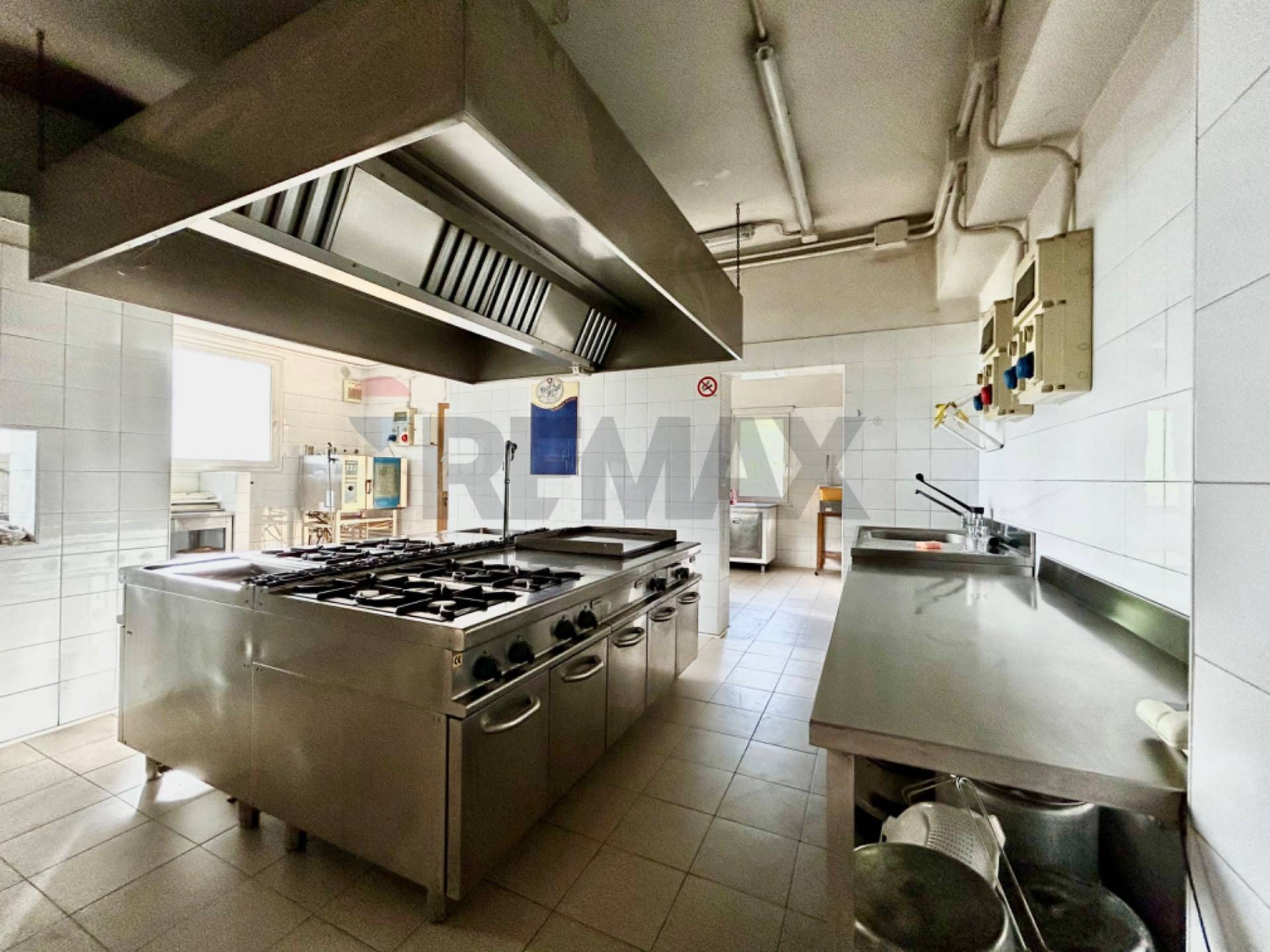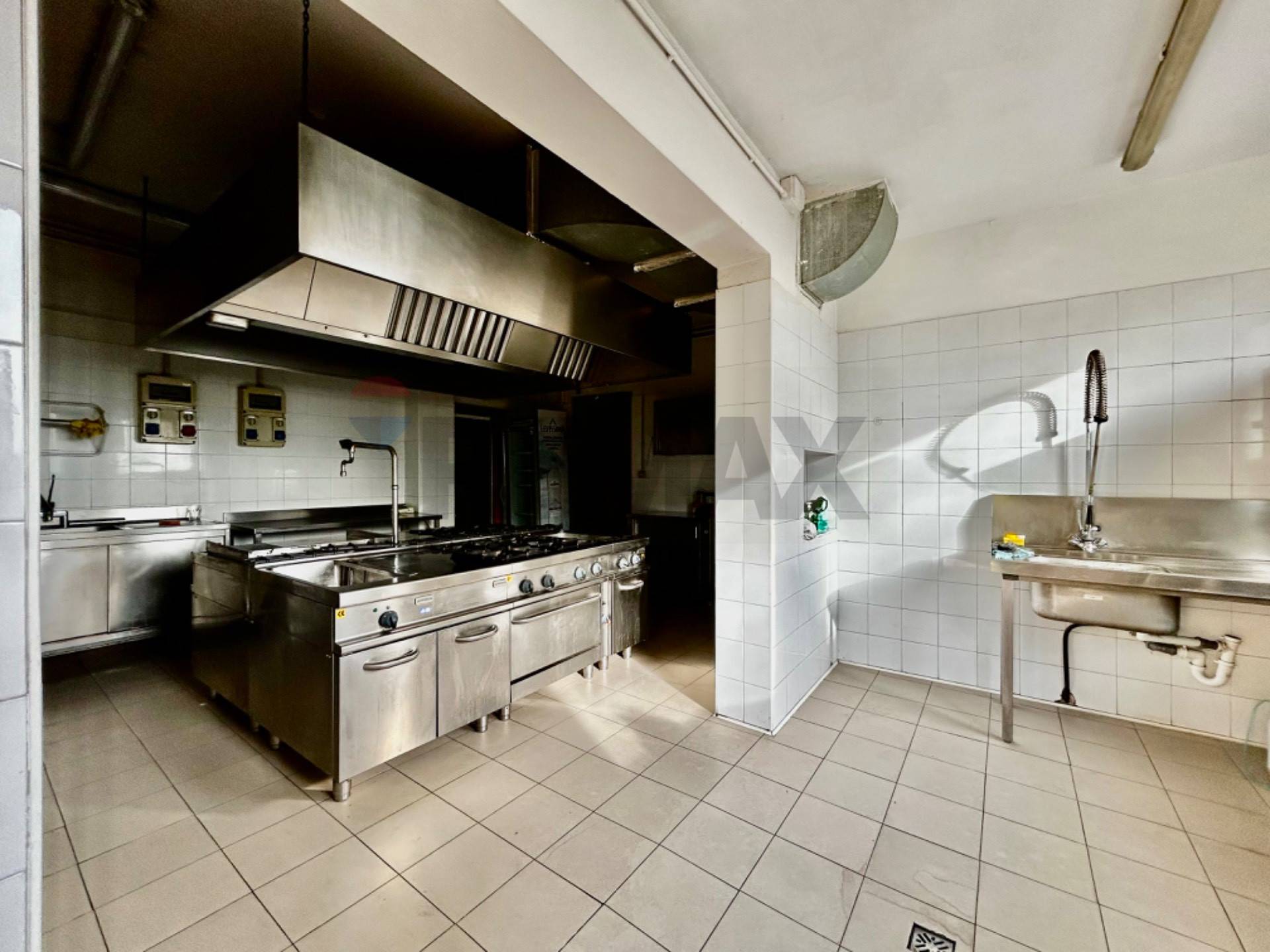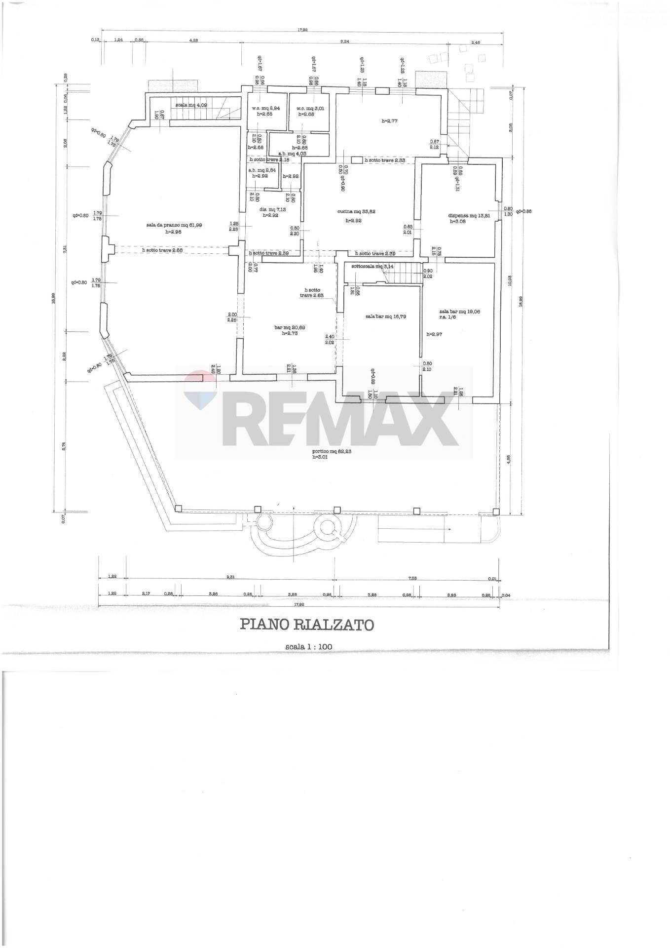 Al piano rialzato troviamo una zona adibita alla somministrazione di cibi e bevande, con sala ristorante, zona bar , cucina, dispensa, disimpegno, antibagni e bagni.
