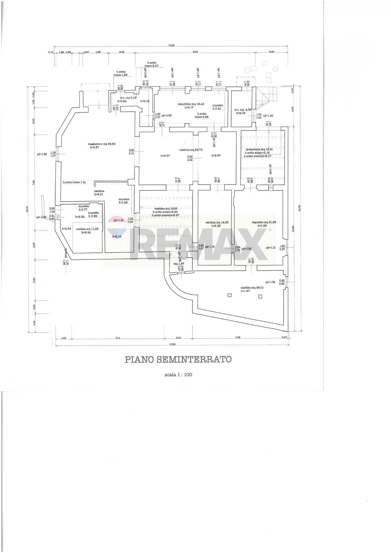 Il piano seminterrato di circa 236 mq è composto e articolato da cantine , magazzini, deposito, lavanderia, locale tecnico.
